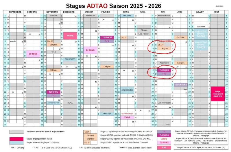 Dès le début de la saison, Yannick nous fait parvenir le calendrier de ses interventions que vous pouvez retrouver sous l'onglet "Stages à venir". Je vous le reproduis ci-dessous pour vous rappeler que le mois de mai sera particulièrement riche en événements puisque Yannick vient nous voir le 9 mai avant de se rendre à Langres, le lendemain, 10 mai, et qu'il attend les plus mordus à Custines les 16 et 17 mai pour un stage orienté sur le Tui Shou et le Taichi Chuan. N'oubliez pas de mettre vos agendas à jour !